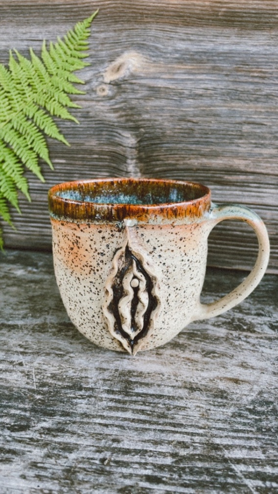 Kamionkowy kubek z rzeźbioną joni