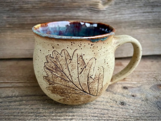 Przyjemnie okrągły, kamionkowy kubek cycuszek z różowym wnętrzem
